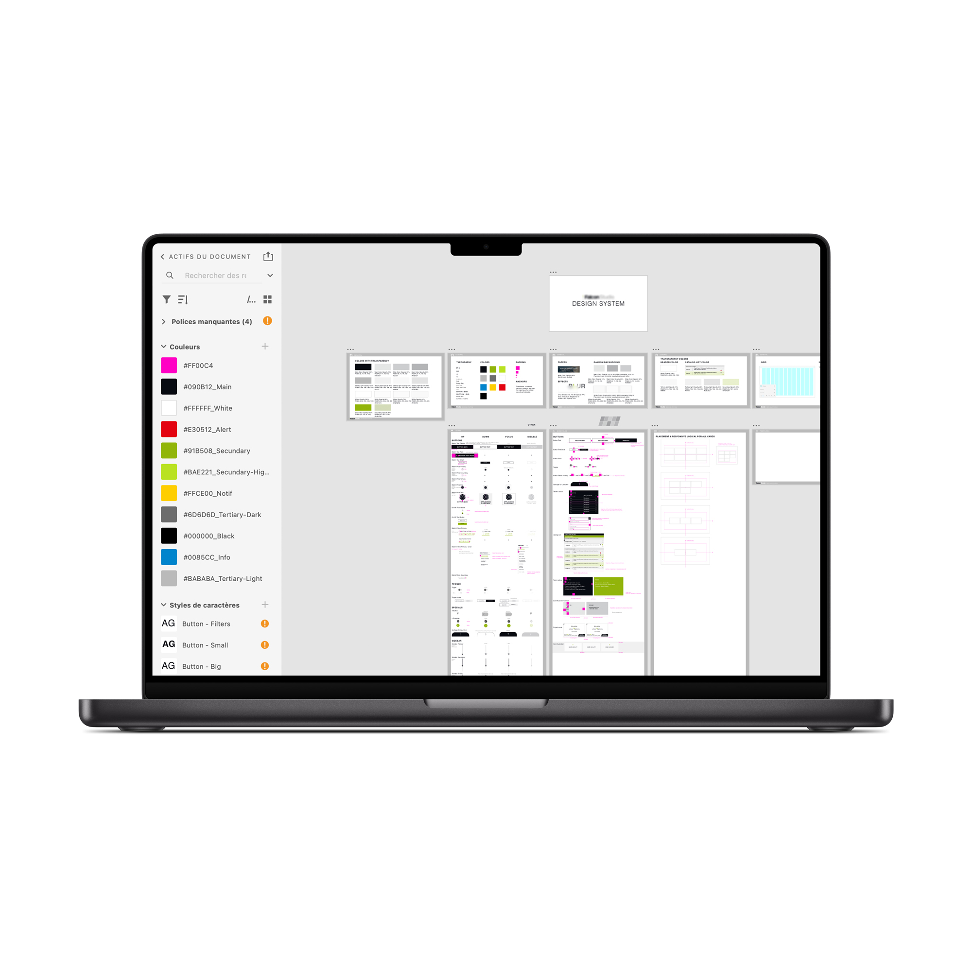 Un Design Système complet pour une application développée dans Adobe XD. L’objectif était de concevoir une base visuelle cohérente et évolutive, facilitant la collaboration entre les équipes de design et de développement tout en garantissant une expérience utilisateur fluide et homogène.